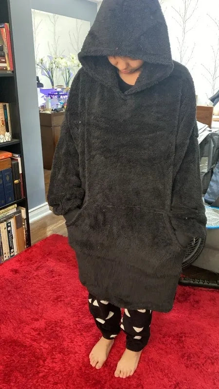 Transform your chill time into pure bliss. This cozy oversized hoodie blanket is like a warm hug, perfect for movie nights, reading, or just relaxing. You'll never want to take it off.